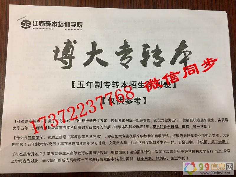 江苏博大专转本学校主做五年制(五年一贯制)专转本辅导,办学13年,在江苏南京、常州、苏州、无锡,南通等城市均设有分校,每年培训近千人次,通过率高达90%,江苏博大专转本与南京晓庄 、金陵科技、三江学院等9所主考本科院校合作,提前获取专业课精准考纲,并编著权威内部教学资料及各专业复习试卷集、模拟测试题等,配合主考院校名师授课,成功转本指日可待来自www.99xinxi.net。