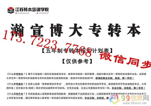江苏瀚宣博大专转本是全江苏唯1一家规模化、专业化的连锁五年制专转本培训学校,不仅提供专转本的考试内容培训,还指导学员如何填报志愿,让更多的学员有机会进入大学学习99信息网www.99xinxi.net。