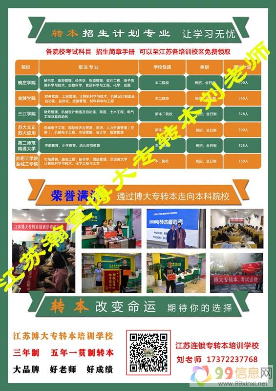 江苏瀚宣博大专转本更多班次供你选择,不管你是零基础还是基础差的都极力推荐你参加——江苏瀚宣博大专转本根据学员基础设置了单科班、强化班、寒暑假集训班、考前辅导班、签约协议班,保三本冲二本,协议有保障,学员可根据自身情况选择适合的班次,更多详情及预约免费试听请联系总校刘老师一七③七二②三七⑦六八,微信同步,总校地址:南京市鼓楼区山西路8号金山大厦A座24楼。