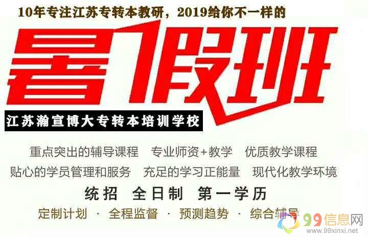 暑假即将来临,还在为暑假如何安排而烦恼吗?江苏瀚宣博大专转本为您排忧解难,让你这个暑假过得更有意义!江苏瀚宣博大专转本暑假班火热招生,名额有限,欲报从速!不管你是基础差还是零基础的考生,也不管你是来自江苏哪个城市(外地学员统一安排住宿),江苏瀚宣博大专转本都为你提供更加专业的五年一贯制专转本考试培训辅导,为你讲解更加详细、前沿、精准的五年制专转本考试政策,以及通过率更高的志愿填报服务,让你学得更轻松,效率更高,让你在这个暑假再提30分,在备考路上领先别人一大截!可免费试听,想要测试及试听的同学或家长可微信提前与我联系,咨询热线:吴老师:一八零零五一四三六四五,微信同步。地址:南京市鼓楼区山西路8号金山大厦A座24楼。