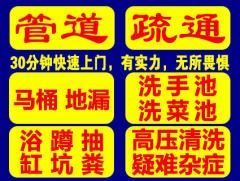 疏通下水道:家庭、酒店、公司、学校等单位的下水道;小便池、阴沟、窑井、化粪池等各种下水管道疏通清理,污水管道疏通清理。...