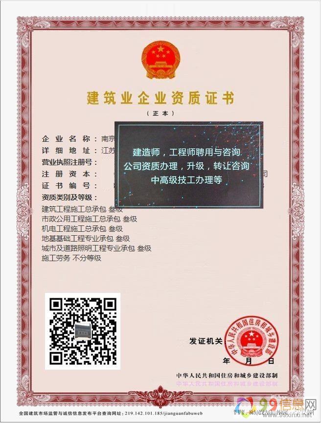 俗话说:万事开头难9 9 信 息 网。建筑行业也是如此,一块空地想要变成优秀的工程项目,不光要有好的建设团队,特别需要前期的筹划和创意来源www.99xinxi.net。所以一个好的工程公司那可谓是人才济济原文www.99xinxi.net。而要设立一家工程公司,找人才,跑相关部门申报,审批,那可谓是事务繁多,一个头俩个大,如果没有一个专业的办理团队,可能耗费大量的资金和时间,最后还是竹篮打水一场空,什么也没有办成,还错过了竞标时限99xinxi.net。所以找我们帮忙办理建筑业资质很是有必要99xinxi.net。