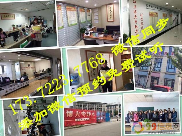 江苏瀚宣博大专转本是江苏省唯1一家拥有10年以上办学经验的五年制专转本(五年一贯制专转本)培训辅导机构,为学员提供更加优质化的五年制专转本学习指导服务,提供更加人性化的心理疏导服务,以及通过率更高的志愿填报服务,让更多的考生都有机会考上理想的本科院校9.9.x.i.n.x.i.n.e.t。想了解最新院校招生简章及考试科目可以线上联系江苏瀚宣博大专转本总校刘老师一七③七二②三七⑦六八,微信同步,也可线下咨询至瀚宣博大专转本总校:南京市鼓楼区山西路8号金山大厦A座24楼9.9.信.息.网。