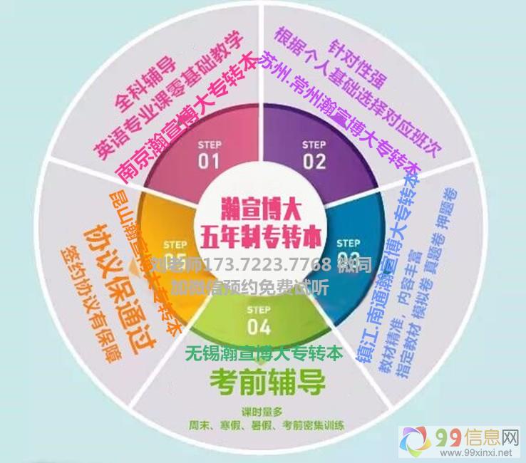 江苏各城市五年制专转本(五年一贯制专转本)培训辅导首选江苏瀚宣博大专转本9~9~x~i~n~x~i~n~e~t,为有梦想的同学提供转本的平台,发展于2005年,是江苏省首个规模化、系统化、专业化、小班化、品牌化、连锁化五年制专转本培训辅导学校,为转本的同学们提供五年制专转本政策指导和帮助,为考生理清复习思路,统筹难点要点,教会考生最恰当的复习方法,为其答疑解惑,让考生更加明确考试的方向,提供良好的学习环境,时刻关注学员最新学习动态,并针对考前心理疏导,让考生以一个良好的备考状态上战场,引导考生走上转本的成功之路!