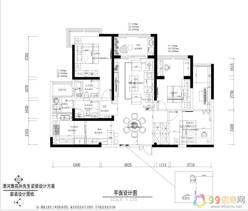 主材:8w(地暖,中央空调,地砖,多层实木地板,墙布,定制家具,门,橱柜等)www.99xinxi.net