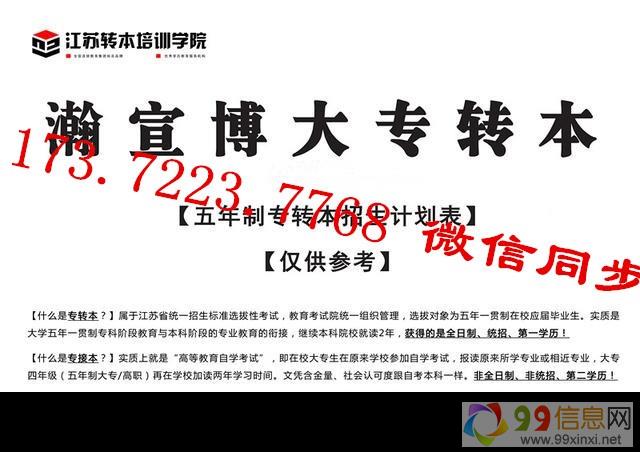 江苏瀚宣博大专转本——全江苏唯1一家专做五年一贯制专转本主考院校所有专业课、英语课实体培训的辅导机构,正在面向南京、无锡、江阴、宜兴、常州、扬州、苏州、连云港、淮安、 昆山、镇江、徐州、泰州、盐城、镇江、张家港、句容等江苏地区五年制高职院校招生,更多五年制专转本详情级预约免费试听请联系江苏瀚宣博大专转本总校刘老师一七③七二②三七⑦六八,微信同步,咨询校区:南京总校、徐州校区、镇江校区、南通校区、苏州校区、常州校区、无锡等校区bRN。