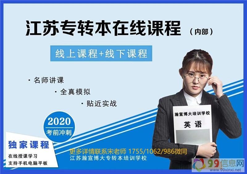 江苏瀚宣博大专转本学校专业从事五年制专转本辅导14年,根据国情和现阶段的疫情发展情况,特地开设了五年制专转本网络教学和线下教学结合课程,不耽误五年制专转本考生的备考,根据考试重点和考试内容系统分科目详细讲解,通过老师课堂教学,进一步加深各科的内容,起到提纲挚领的作用,在教学过程中,将往年考试内容贯穿其中,一方面让学生掌握了基本考点,另一方面在重点内容上进行强化,促进学生取得高分,升入理想院校,更多转本课程详情联系总校宋老师 1755/1062/986微9 9 信 息 网。信同步,添加微9.9.信.息.网。信预约免费试听课99信息网www.99xinxi.net。