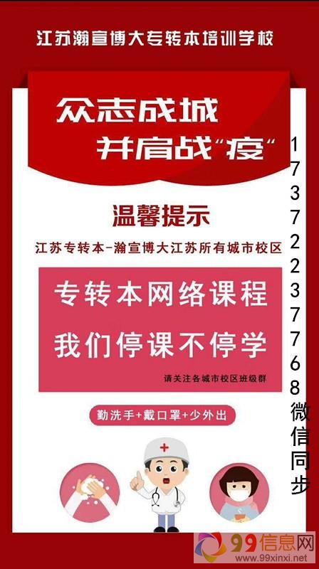 江苏瀚宣博大五年制专转本办学13年,是江苏省唯1一家规模化主做五年制专转本(五年一贯制专转本)的教育培训机构,目前已有南京瀚宣博大五年制专转本、徐州瀚宣博大五年制专转本、苏州瀚宣博大五年制专转本、常州瀚宣博大五年制专转本、无锡瀚宣博大五年制专转本、南通瀚宣博大五年制专转本、徐州博大五年制专转本等多家分校,上课地点就近安排VOv。延期开学后,学生们在家如何学习?为了更好的提供给学习资源,各地纷纷开始网络课程,确保考生停课不停学!瀚宣博大五年制专转本英语及专业课网络视频课程现已全面上线:参加2020年,2021年、2022年、2023年、2024年各城市备考生均可以报名学习9+9+信+息+网。江苏瀚宣博大五年制专转本拥有强大的全职师资阵容,精准的内部学习资料,与南京晓庄、金陵科技、苏大文正、苏大应用、淮阴工学院等多家本科院校进行合作,提前分析各大院校考前考点,对重难点进行详细分析及查漏补缺,更有每月模拟测试训练,及时掌握每位学员的上课情况,提高转本通过率,专业课有一对一辅导、一对多辅导,上课时间:周末、暑假、寒假、考前,更多五年制专转本详情级预约免费试听请联系江苏瀚宣博大专转本总校刘老师一七③七二②三七⑦六八,微信同步,咨询校区:南京总校、徐州校区、镇江校区、南通校区、苏州校区、常州校区、无锡等校区9~9~信~息~网。