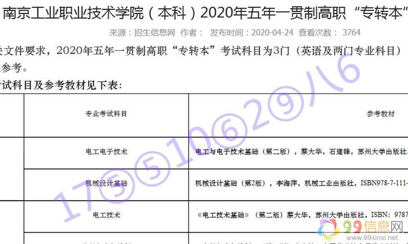 2020年南京工业职业技术学院已加入五年制专转本招生计划