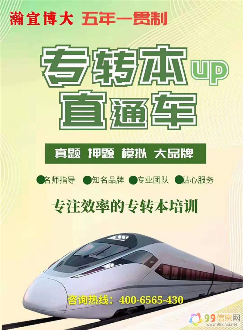 江苏瀚宣博大五年制专转本有十几年的专转本办学经验,为学员提供专业咨询、院校介绍、志愿填报、英语辅导、考纲提供、专业课教学、统一报名、集体送考等一系列流程化服务、让考生对五年制专转本的了解更加深入,更加有方向性和针对性。主要是对江苏省内五年制专转本职高生进行补习,我们根据学员的基础情况定制不同的教学方案和开设不同的班级9.9.信.息.网。考前冲刺班的学生,我们会组织多次模拟考试,进行演练。让学生能够感受到考试的氛围,并且掌握对考试时间的把控度。还有平时的周末辅导班,由专业的出卷或阅卷老师授课,而且是小班制教学,学习氛围浓厚,讲课老师也能更快的了解每位学生的课程掌握度和优劣点9_9_x_i_n_x_i_n_e_t。详情咨询武老师,壹八零,零五壹丝,叁陆四物。