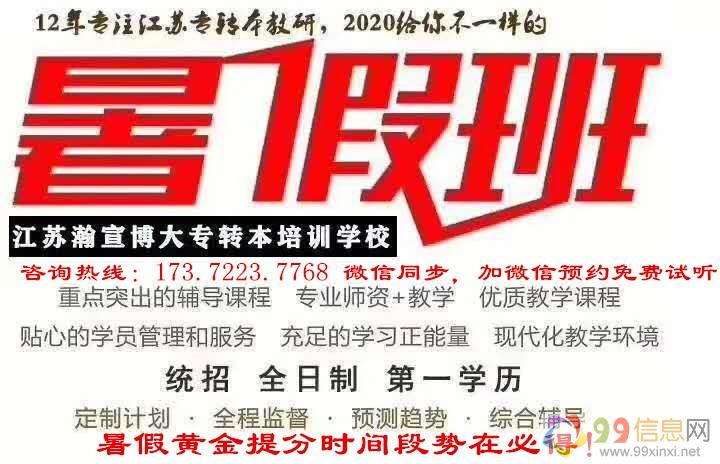 江苏瀚宣博大五年制专转本培训辅导机构是专转本业界公认的师资水平高、升学率高、学习效率高的专转本培训学校来自www.99xinxi.net。优.秀的师资力量,精准的内部.学习资.料,更加人性化、个性化的教学方法,只为圆考生本科梦,让考生转本更轻松!