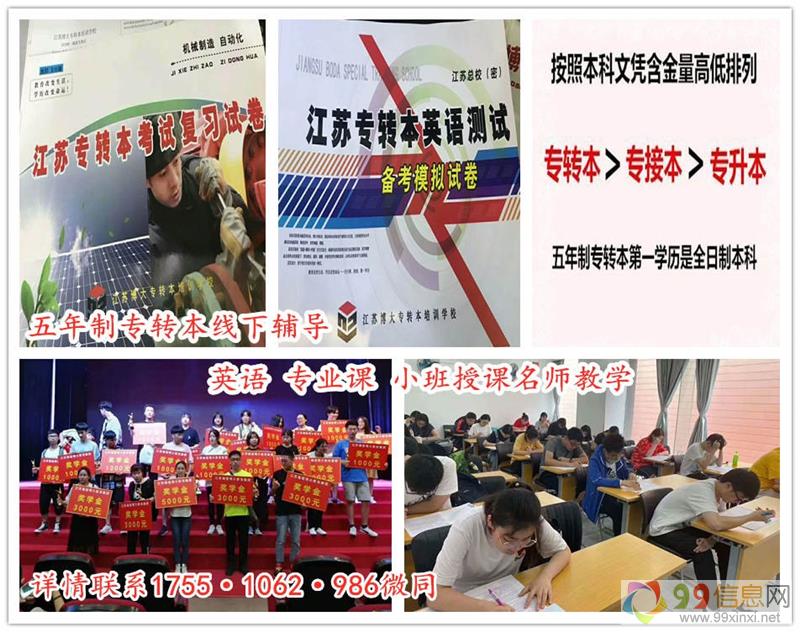 辅导班的作用不仅体现在专业授课老师讲解,还有针对性的资料,另外还会有教务老师全程督促学习,跟着老师进度复习,转本还是有保障的,江苏瀚宣博大专转本学校办学14年,主要从事五年制专转本辅导,汇集了众多经验丰富的名师,辅导英语和所有主考院校专业课,小班化教学,并制定了高校科学的教学方式,帮助同学们提高复习效率,找到复习方向,根据考生的基础和报考院校专业分班授课,量身定制教学计划,老师能管理到每位学员,还开设有五年制专转本周末班,考前班,签约协议班等不同班次,可试听了解详情,联系瀚宣博大宋老师 1755(微)1062(信)986预约试听,秋季新班正在招生,现在咨询有优惠9~9~x~i~n~x~i~n~e~t。
