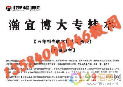 江苏瀚宣博大专转本培训学校是江苏唯1一家也是规模最大的一家连锁专转本培训机构www.99xinxi.net99信息网。每年辅导人数上万,帮助更多五年制专转本考生顺利转本。江苏瀚宣博大专转本培训学校根据五年一贯制高职生可利用的自由时间选择在平时的周末、寒暑假、考试前1-3个月集中上课,保证考生不耽误学校的学习,通过江苏瀚宣博大专转本的辅导来提高自己的学习能力,提升英语词汇量,提高英语基础,专业课的学习更是能提前进入考试状态,江苏瀚宣博大专转本提前获取主考院校精准考纲,根据考试的重点和难点进行针对性的辅导和查漏补缺,让学员在备考的路上占据极大优势;英语历年真题卷、模拟卷、押题卷,提升应试技巧和解题速度,让你通过有目的性的刷题提高成绩。江苏瀚宣博大五年制专转本根据学员的不同基础设置了单科班、寒暑假班、冲刺班、考前班、签约协议班,保三本冲二本,协议有保障,具体培训详情联系招生周老师:①③⑤捌肆零④⑨④陆,微信同步欢迎www.99xinxi.net。江苏瀚宣博大五年制专转本各城市校区正在专业课预约报名排课哦!学员和家长可以去邻近校区进行实地考察并预约免费试听。