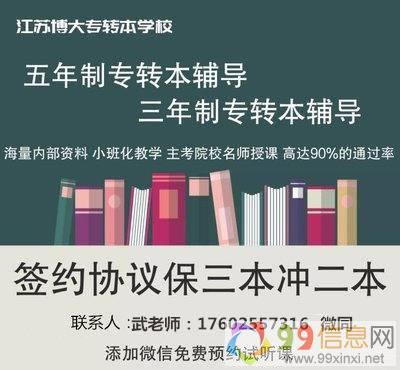江苏瀚宣博大是江苏省唯1一家专业化、系统化、规模化、连锁化主做五年制专转本(五年一贯制专转本)培训辅导,已经有14年的培训经验,拥有一流的师资力量,不仅提供学员更丰富的学习资源,高效的复习方法,英语辅导、专业课教学,还有专业的咨询、院校介绍、考纲提供、统一报名、志愿填报、集体送考等一系列流程化服务99信息网。更多详情可免费咨询武老师:176(微)0255(同)7316。