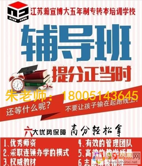 江苏瀚宣博大专转本是一家专门从事五年制专转本教育,已经有14年的培训经验,拥有一流的师资力量,不仅提供学员更丰富的学习资源,高效的复习方法,英语辅导、专业课教学,还有专业的咨询、院校介绍、考纲提供、统一报名、志愿填报、集体送考等一系列流程化服务。更多五年制专转本详情及预约免费试听具体联系朱老师180(同)0514(威)3645(信)唯心:fky18699信息网www.99xinxi.net。