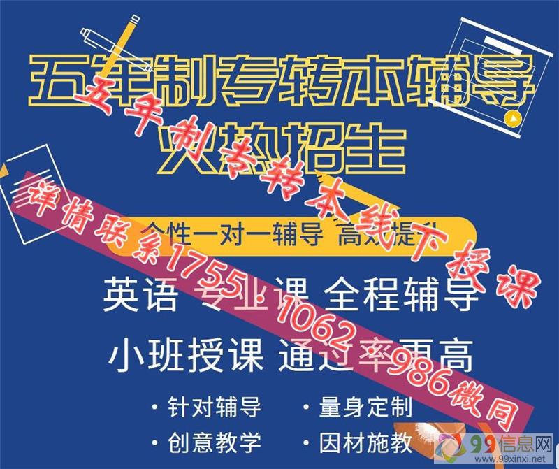 江苏瀚宣博大专转本学校是江苏唯1线下专业从事五年制专转本英语和专业课辅导的培训机构,专业授课14年,无论是师资力量还是通过率都是遥遥领先,小班化授课,为学员提供五年制专转本专业咨询、详细院校介绍、英语辅导、专业课教学、统一报名、集体送考、志愿填报等一系列流程化服务,每月都有月考周考,一方面可以了解自己实力,为填报志愿作参考,一方面进行针对性的辅导和查漏补缺,发挥优势,弥补短板,让考生对五年制专转本的了解更加深入,备考更轻松,更有方向性,全年滚动开班,随到随学,一次报名,循环上课直至考试,包含书本教材、英语试卷集、习题册,专业课真.题卷模.拟卷,中间不收取任何费用,详情联系瀚宣博大宋老师 1755(微)1062(信)986了解详情,联系老师预约转本试听课来源www.99xinxi.net。
